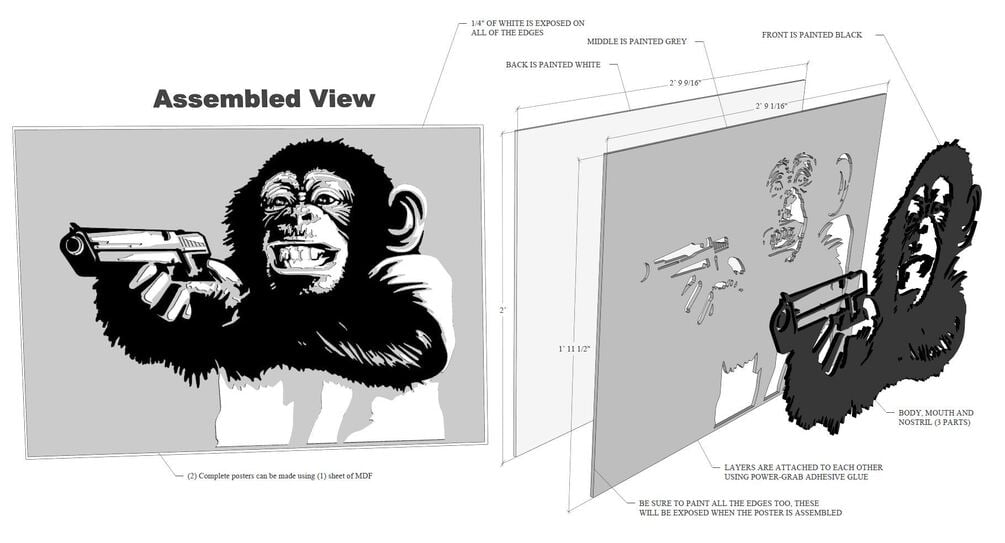 This is a CNC Router Cut File (My Personal Favorite) for a 3 dimensional poster made with layers of painted 5.2mm MDF (a little less than 1/4"). With this purchase, you get a DXF file that contains the cut file, the Sketch-Up 2016 file that created the PDF detail drawing and photographs of this exact file after it was cut, painted and assembled. This is poster size but you can scale this to your liking. Perfect for a man cave. Please check out my other posters to see if there is one you like.
